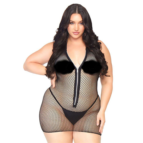 Leg Avenue Fishnet Zip Up Dress Plus Size UK 14 to 18